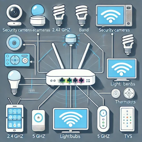 - 2.4 GHz: Longer range, better for devices located farther from the router (e.g., smart sensors).